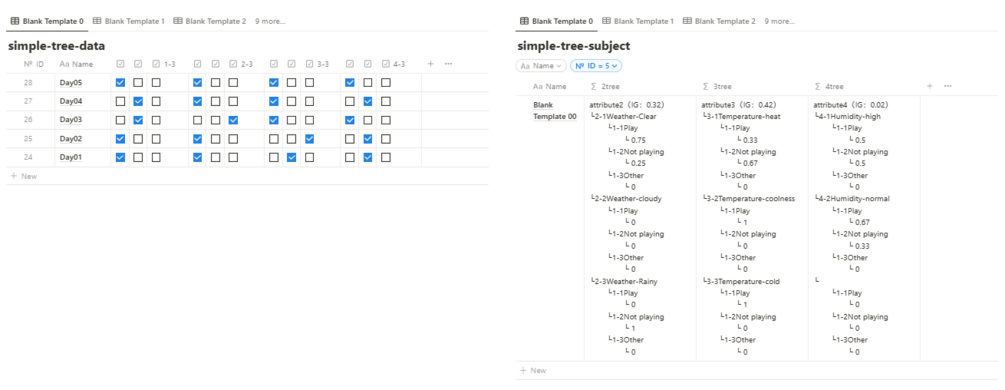 A simple machine learning decision tree model implemented using Notion's formula function, used to automatically summarize patterns from data.
